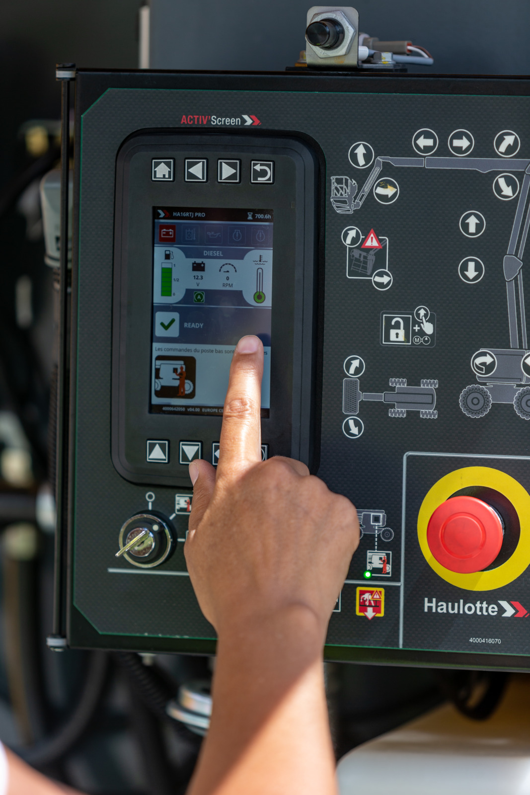 - Haulotte Activ'screen beépített diagnosztikai rendszer